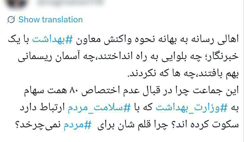 یکی از افراد پر حاشیه نظام سلامت که بارها افراد اصناف مختلف را مورد توهین قرار داده بود و در آخرین اقدام خود با توییتی خبرنگاران را مورد قضاوت قرارداد و محکوم کرد که خبرنگاران قلمشان برای مردم نمی چرخد.