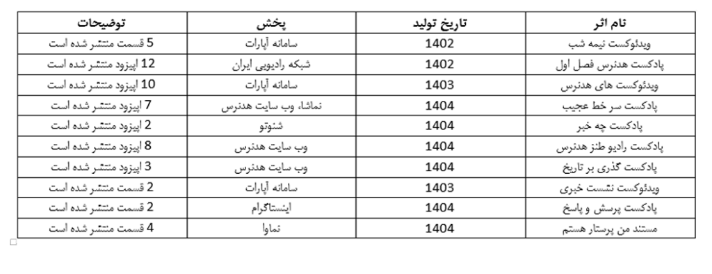 بخشی از تولیدات رسانه ی هدنرس از سال 1402 تا به امروز
